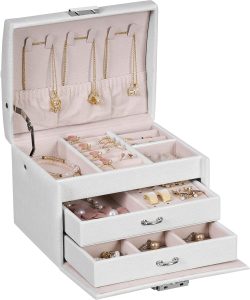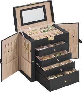 The Homde jewelry box is designed for those with extensive collections. It features multiple drawers, compartments, and a locking mechanism to keep everything secure.