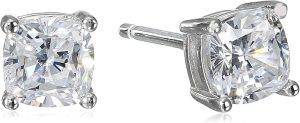 5. Amazon Essentials Platinum Plated Sterling Silver Cushion Cut Cubic Zirconia Stud Earrings